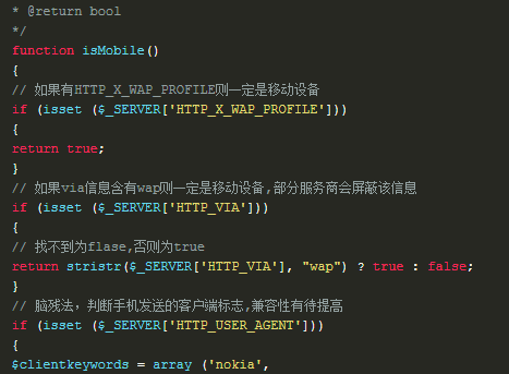 PHP判断访客是否移动端访问网站